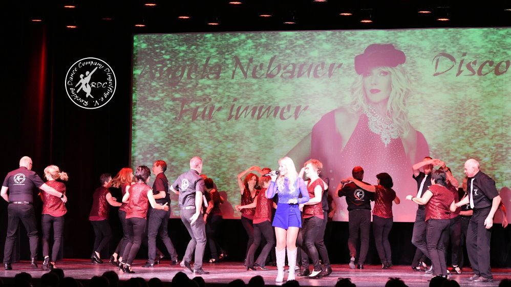 Ein besonderer Gast Eine besondere Überraschung für die Gäste hatte dann die Gesellschaftstanzgruppe. Sie führten einen Discofox zum Lied „Spiel der Liebe“ von Angela Nebauer auf. Die Sängerin stand für diesen Auftritt selbst auf der Bühne und trug ihren Song leidenschaftlich vor, während die Tänzer hinter ihr die vielen Discofox-Figuren zeigten, die sie beherrschten. Angela Nebauer hatte dann noch eine weitere Überraschung für die Zuschauer parat und sang das Lied „Für Immer“, welches mit ihrer LP im März erscheint. Anschließend gingen die „Rocking Heartbeat“ erneut auf die Bühne und zeigten ihre Performance zu „Love Is Gone“.