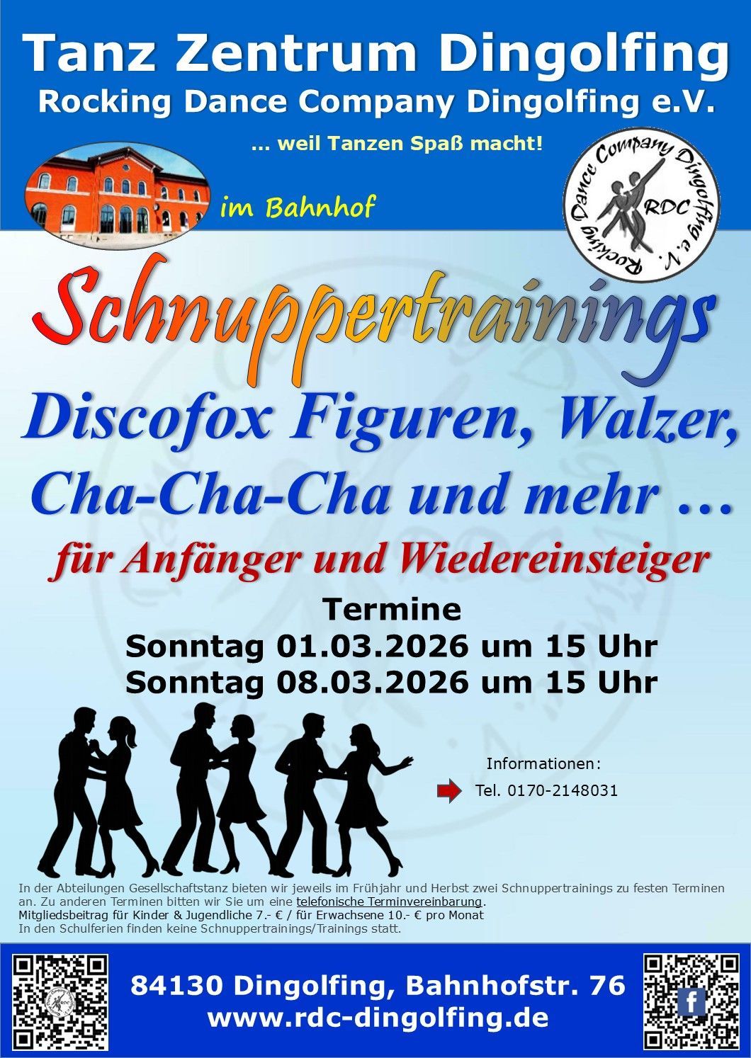 Alle Trainings finden im Tanz Zentrum Dingolfing (Bahnhof) statt.